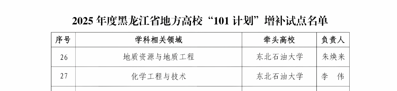 近日,黑龙江省教育厅发布《关于开展高等教育综合改革首批试点的通知》。我院地质资源与地质工程学科相关领域入选全省“101计划”增补试点项目、资源勘查工程专业入选首批本科专业数智升级改造试点项目。此外,我院还支撑页岩油气“地质-工程-装备”一体化专业集群入选全省区域产教融合优势特色专业集群建设试点项目、能源科学与工程学院入选全省人才培养改革实验区建设试点项目。