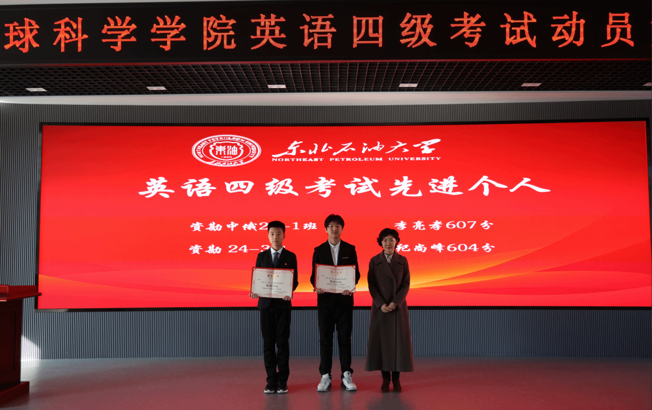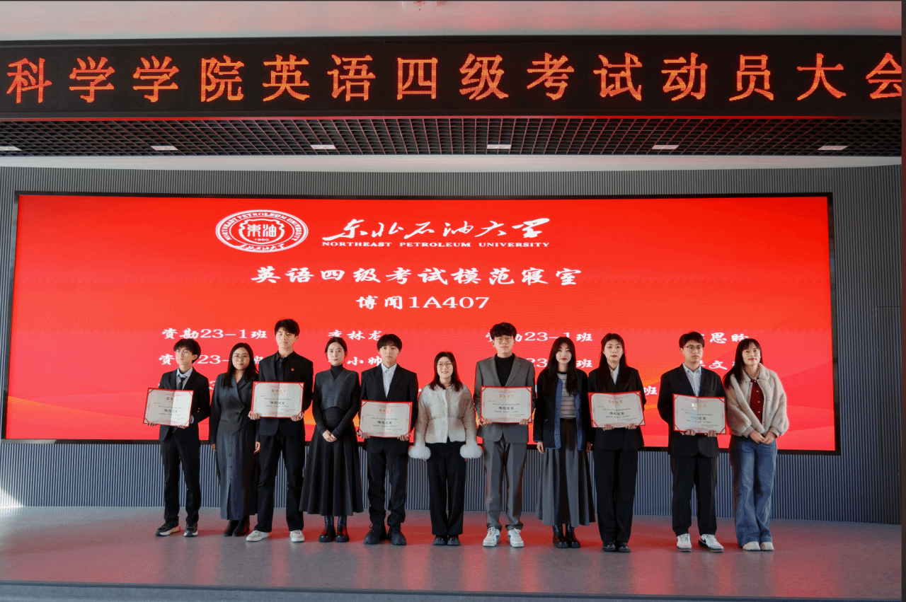 会上,学院表彰了在过往英语四级考试中涌现出的一批成绩优异的个人、学风优良的班级和互助共进的宿舍集体。激励更多同学以榜样为帆,在知识海洋中破浪前行。学院党委书记韦丹宁、获奖班级班主任、辅导员分别为英语四级考试先进个人代表、先进班集体代表、模范寝室代表颁发荣誉证书。