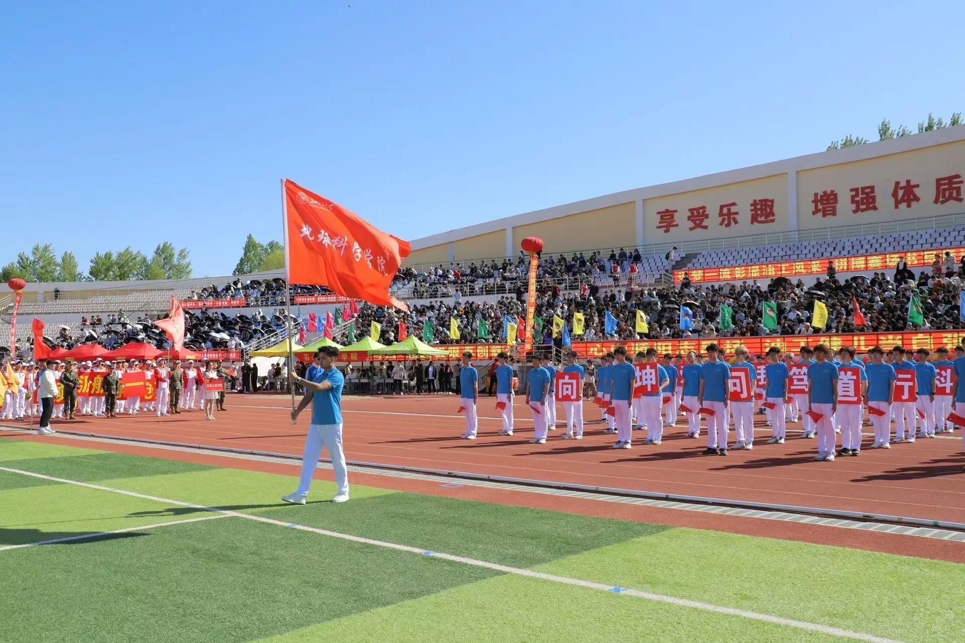 365上市公司第四十二届体育运动会圆满收官,地科院师生以昂扬之姿在赛场上谱写了属于地科人的荣耀华章。在为期两天的激烈角逐中,我院健儿以卓越的竞技水平、默契的团队配合和昂扬的精神面貌,生动诠释了"向坤问道,正心笃行"的院训内涵,为学院赢得荣誉,为校运增添华彩。