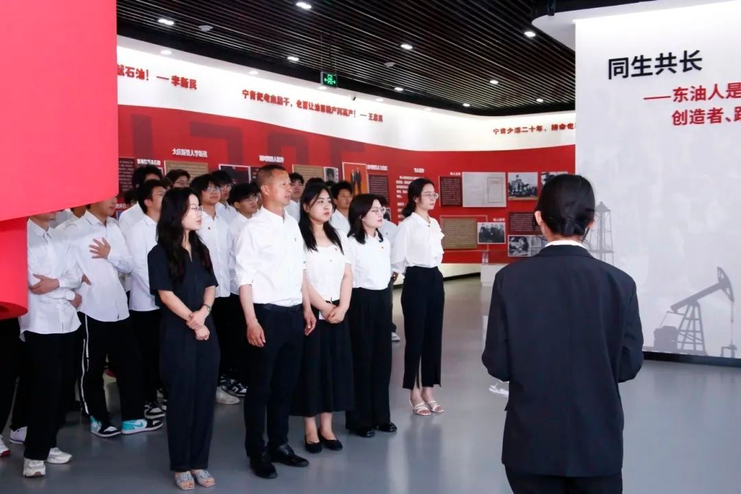 全体师生跟随大庆精神宣讲团成员的脚步,沉浸式参观大庆精神育人展馆,深情回顾学校和大庆油田在党的领导下走过的光辉历程。讲解结合学院特色与“大庆精神”的时代内涵,唱响新时代团员青年肩负的历史使命与责任担当,号召大家以理想之灯照亮奋斗之路,以实干之笔书写青春华章。
