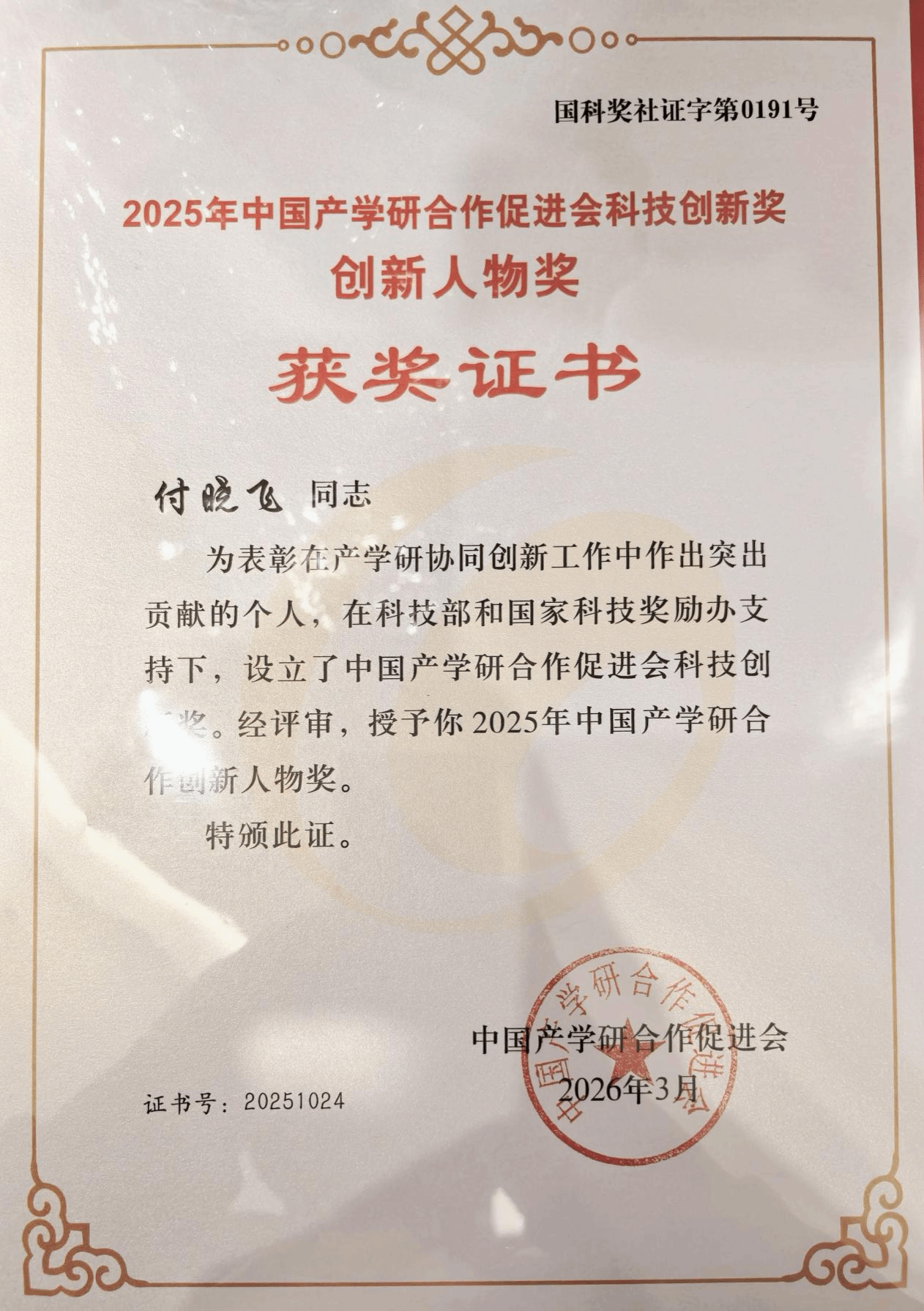 3月15日,第十七届中国产学研合作创新大会在北京举行。会上颁发了2025年度“中国产学研合作促进会科技创新奖”,我院付晓飞教授凭借其在产学研协同创新领域的突出贡献,荣获“2025年中国产学研合作创新人物奖”。