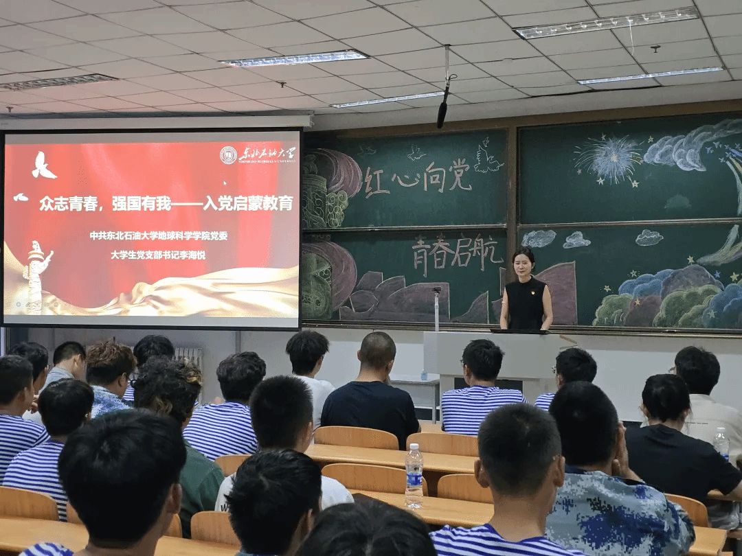 院长孙雨在校史院情专题讲座中,结合学院服务能源勘探开发的历史积淀,激励新生胸怀“国之大者”,将个人理想融入民族复兴伟业,践行“请党放心、强国有我”的青春誓言。