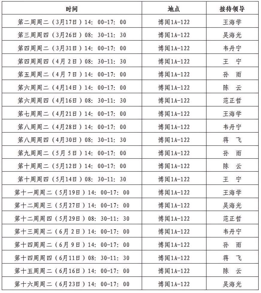为了更好践行“以师生为中心”的理念,精准把握师生需求,切实解决教学科研及生活中的实际问题,特制定英国上市公司365院领导接待日安排计划。详见附表1。